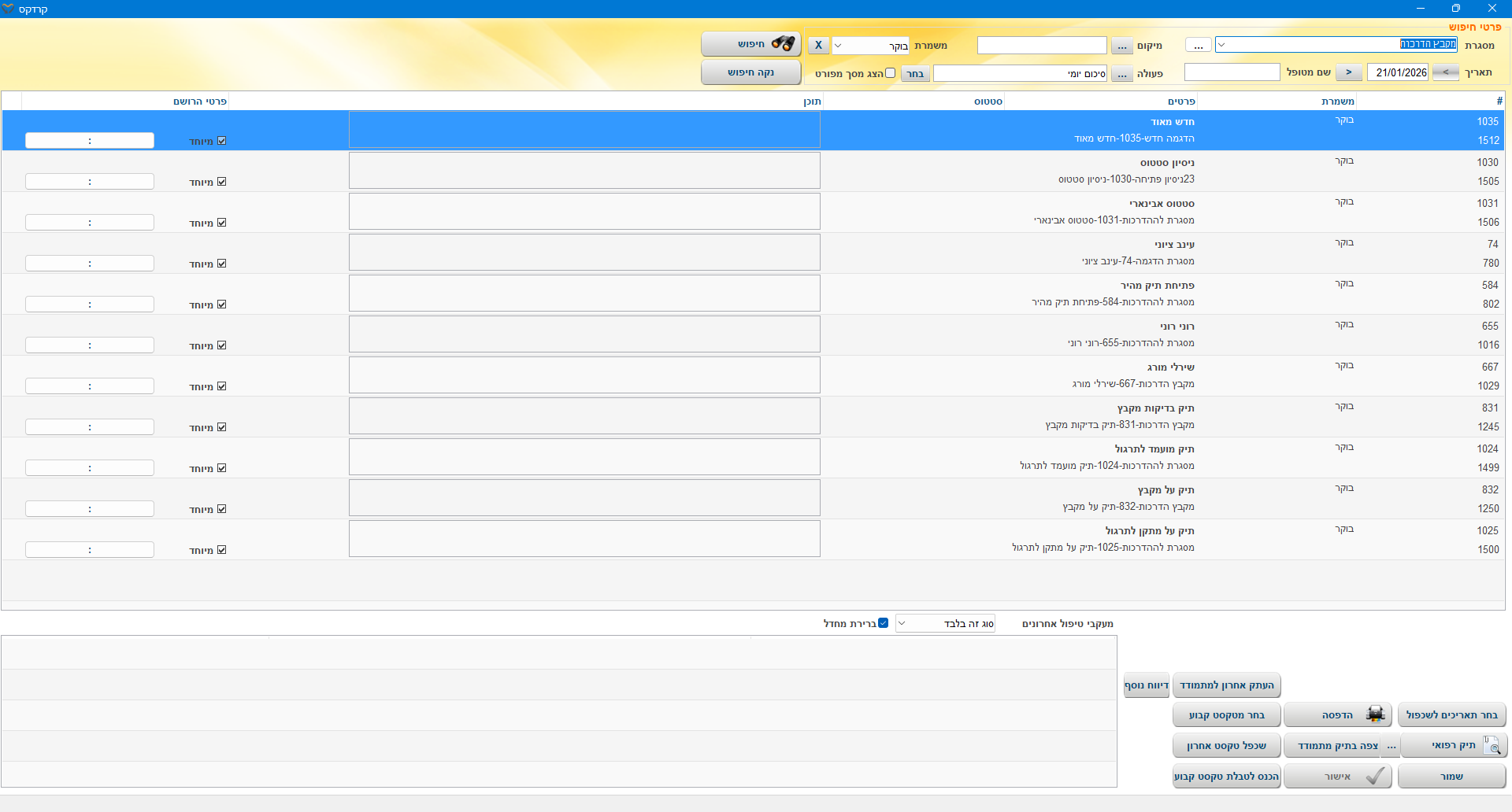 | תאריך | בברירת מחדל יוצג התאריך של היום. ניתן לעבור בין התאריכים ולהזין מעקבים מרוכזים לתאריכים השונים. |
