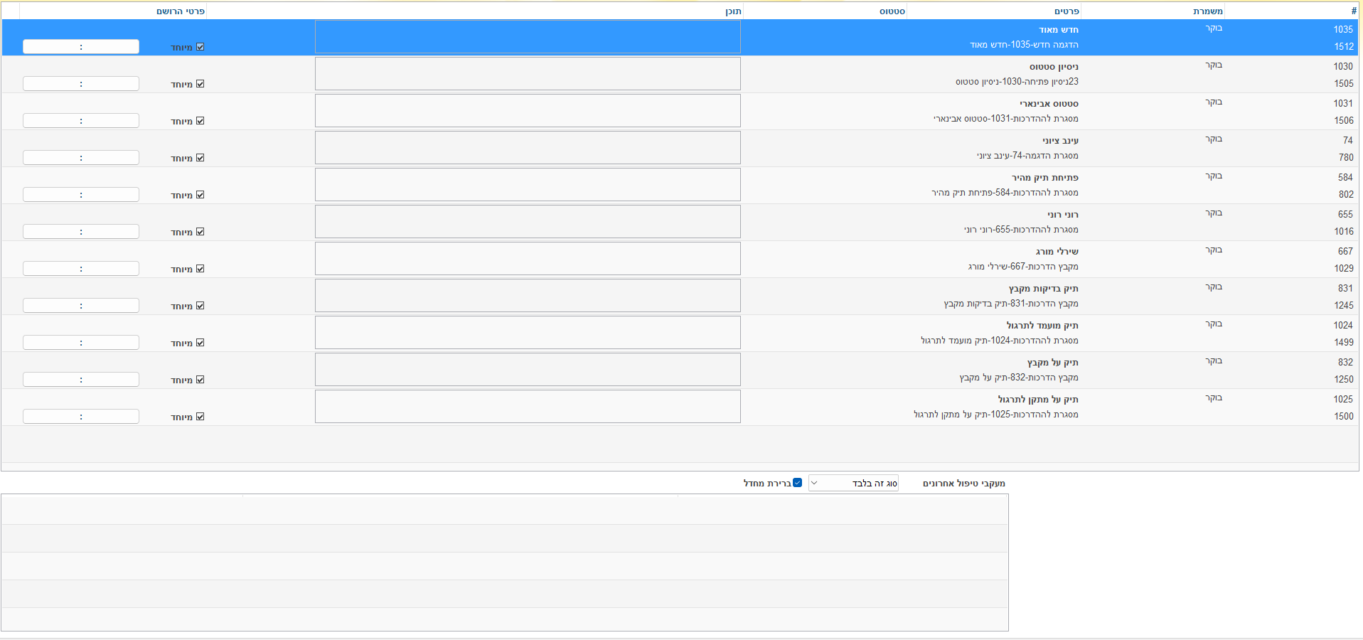 למידע נוסף על רשימת מעקבי הטיפול בארגון יש לגשת למאמר ניהול מעקבי טיפול