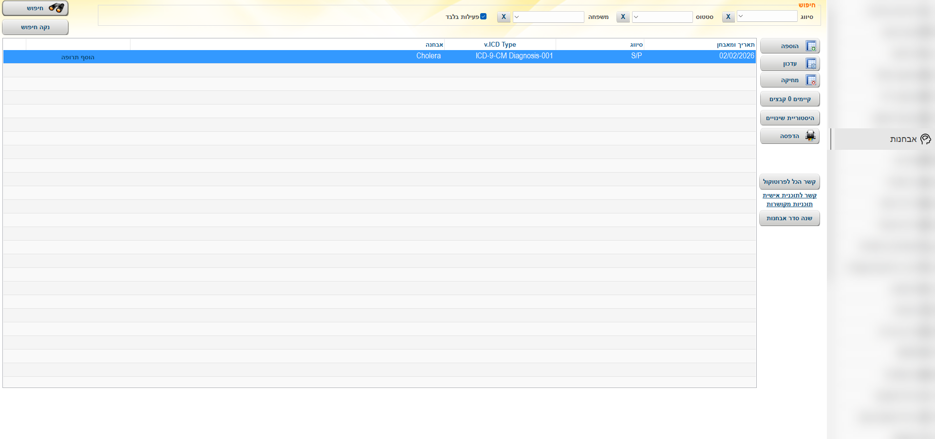 | חיפוש | חיפוש אבחנות על פי נתוני החיפוש שהוזנו |