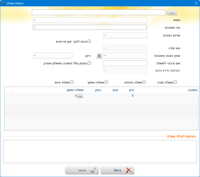 הוספה/עדכון שאלה
