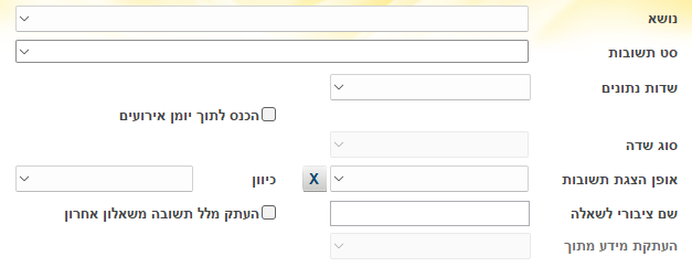 | תשובה | במידה ונבחר ×¡× ×ª×©×××ת , תוצג רשימת התשובות הרלוונטית לסט זה |