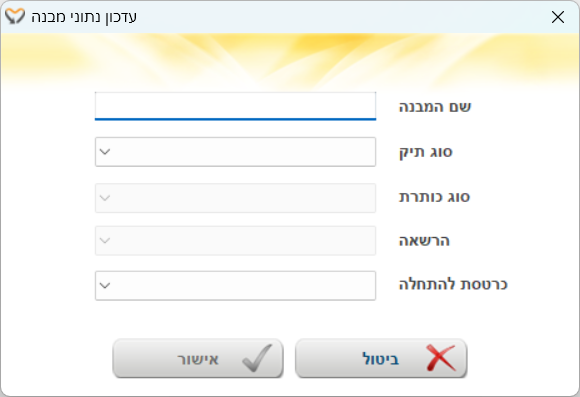 | סוג כותרת | סוג הכותרת מתך רשימת הבחירה. לפי הכותרות שבנינו בניהול כותרות לתיקים. למידע נוסף יש לגשת למאמר ניהול כותרות לתיקים |
