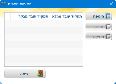 כאשר רוצים שיהיו מספר חתימות על שאלון, יש ללחוץ על כפתור זה ובמסך שייפתח להוסיף את החתימות הרצויות לפי תפקיד.