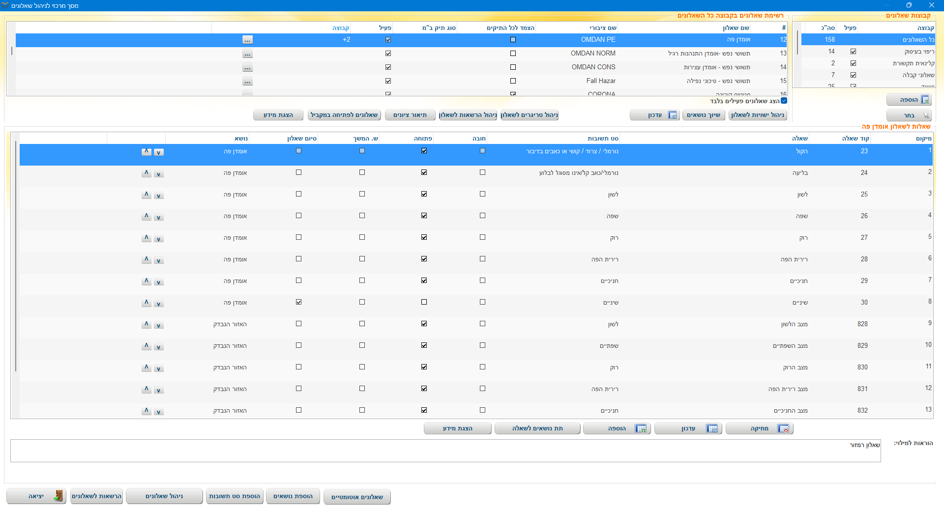 | ניהול שאלונים | ניהול סוגי שאלונים |
