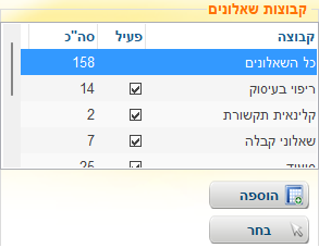 | הוספה | הוספת קבוצת שאלונים חדשה |