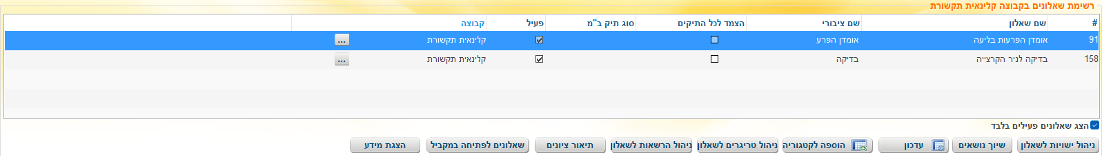 | פעיל | האם השאלון פעיל וניתן לבחור אותו או לא |