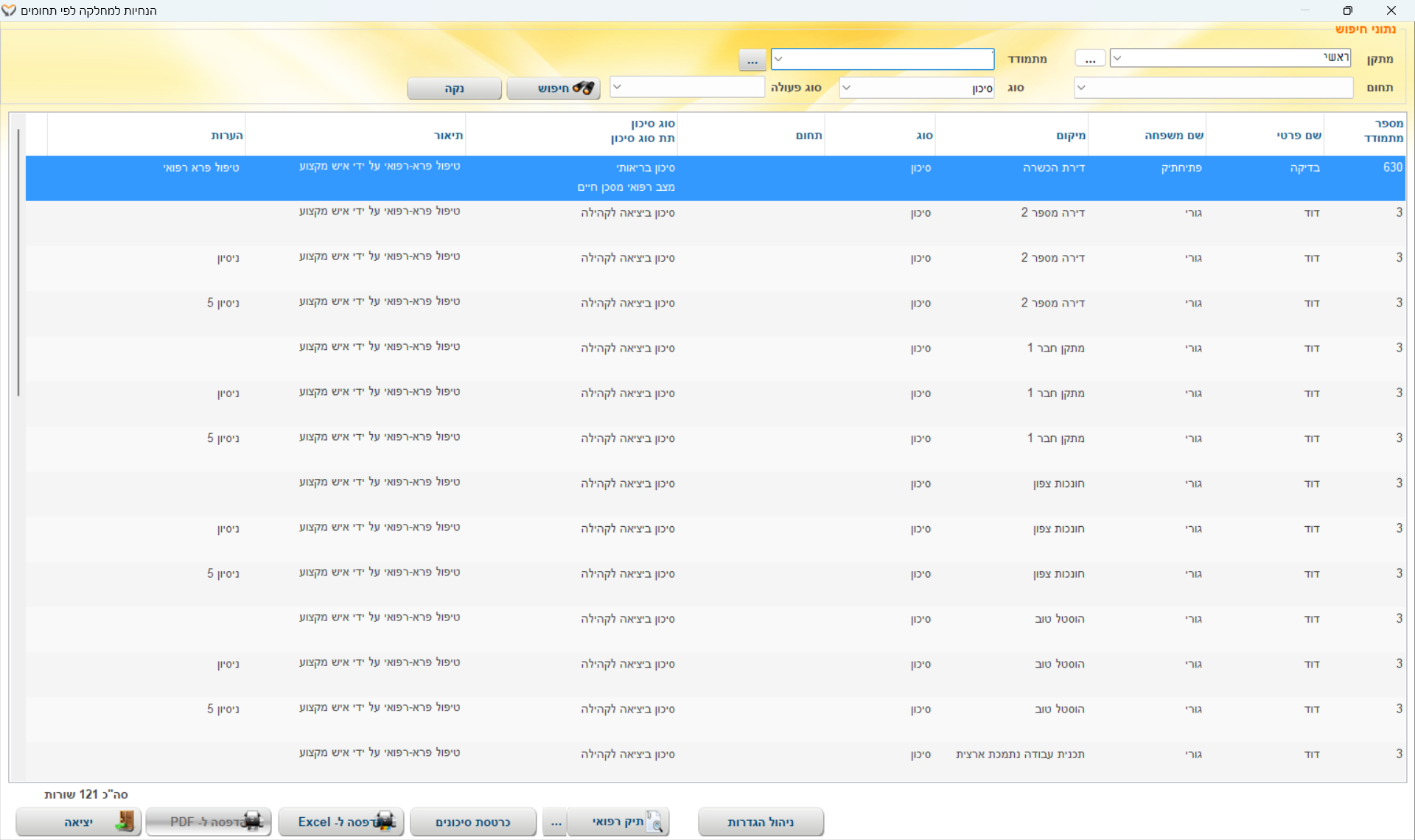 | תיק רפואי | כניסה לתיק הרפואי של מקבל השירות שעליו נעמוד בטבלת הנתונים |