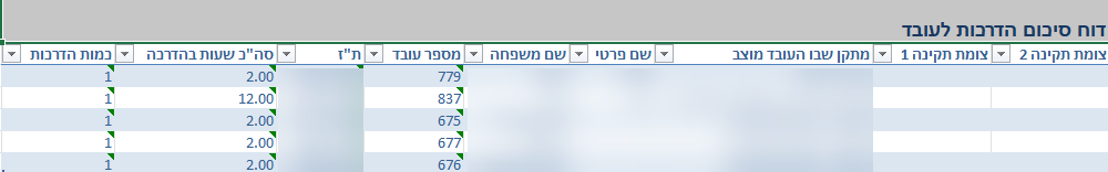 דוח אשר מציג סיכום של ההדרכות של העובדים