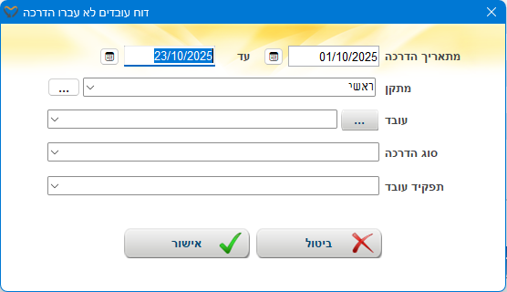 דוח אשר מציג פירוט של כל העובדים שלא עברו הדרכה