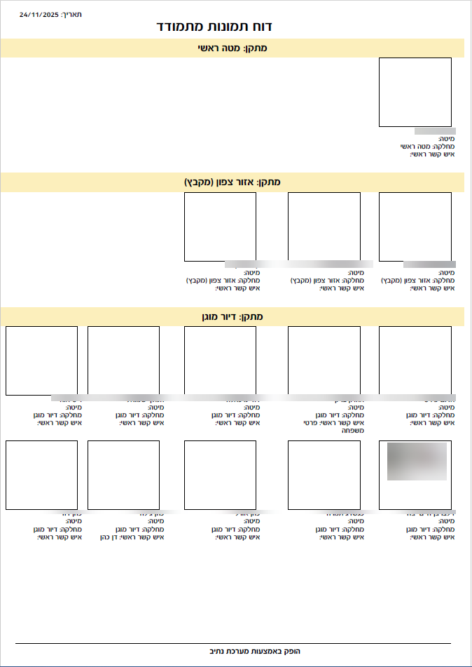 דוח המדפיס תמונות דיירים עם פרטים לפי בחירה - ניתן לבחור עד 4 שדות אשר יודפסו מתחת לתמונה של הדייר.