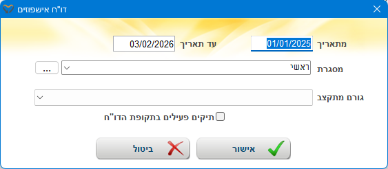 | תיקים פעילים בתקופת הדו"ח | סימון ערך זה יציג בדוח גם רק תיקים שהיו פעילים בתקופת שהוגדרה |