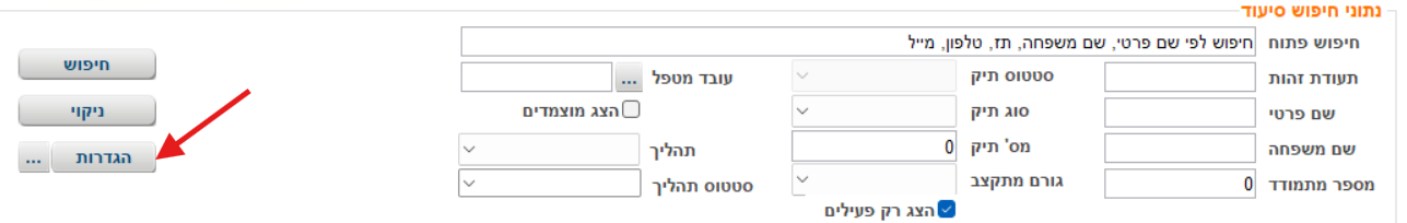 גישה לתיק מותאם של מקבל השירות עליו נעמוד בטבלת הנתונים. למידע נוסף יש להיכנס למאמר תיקים מותאמים |