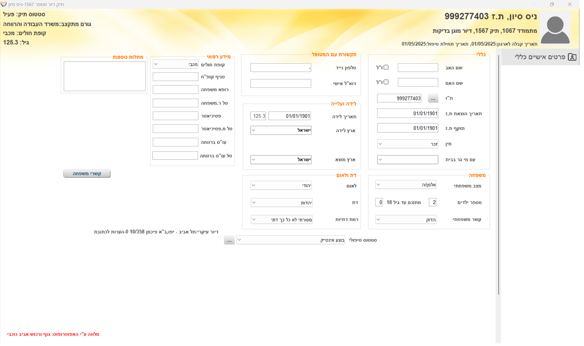 | מצב משפחתי | מצבו המשפחתי של מקבל השירות. יוצג רק אם גיל מקבל השירות גדול מ18. |
