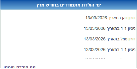 ברכיב זה יוצגו השמות המלאים של מקבלי השרות שחוגגים יומולדת ואת התאריך בשנה ובחודש הנוכחי.