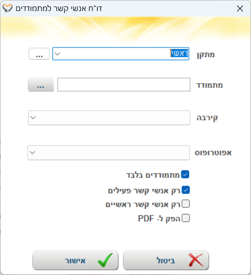 | רק אנשי קשר ראשיים | סימון ערך זה יציג בדוח רק אנשי קשר שסומנו כ"ראשי" |